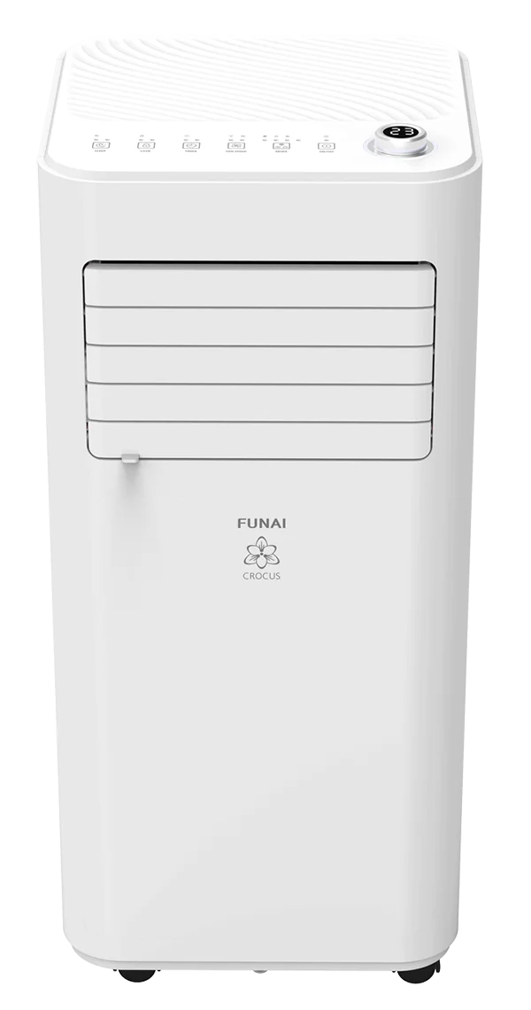 Мобильный кондиционер FUNAI серии CROCUS — это очень простой в установке и эксплуатации прибор.;Благодаря компактным размерам обновленному дизайну он легко впишется в любой интерьер.;Мобильные кондиционеры серии СROCUS имеют: 3 режима работы: охлаждение, осушение, вентиляция. Регулировка скорости потока воздуха (высокая / низкая). Блокировка кнопок от детей. Таймер на включение и выключение прибора.;Мобильные кондиционеры серии CROCUS оснащены стильным терморегулятором. Благодаря которому легко выставить желаемую температуру. Вокруг терморегулятора реализована подсветка дисплея белого цвета. Мобильные кондиционеры серии CROCUS действительно подарят вам истинную прохладу, а регулировка жалюзи и настройка скорости работы вентилятора позволит достичь именно того микроклимата, которого вы желаете.;