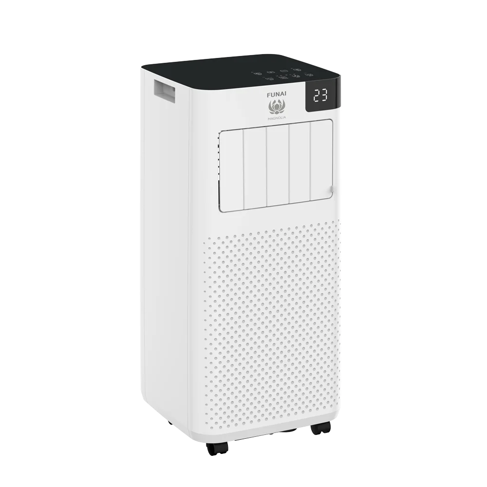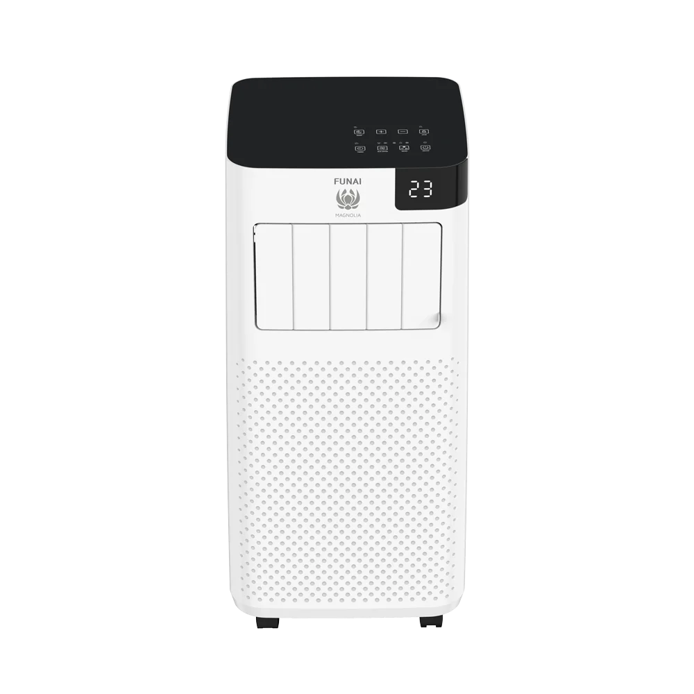 Все климатическое оборудование FUNAI создается в единой концепции Future and Air, которая является стратегической идеей бренда.;Сутью концепции является создание для человека высокого качества его жизни, для чего необходимо наличие здорового и комфортного микроклимата по всем параметрам.;Мобильные кондиционеры FUNAI, серии MAGNOLIA.;Компактные размеры в сочетании с мобильностью позволяют расположить прибор в любом помещении. Мобильные кондиционеры серии MAGNOLIA имеют 3 режима работы: охлаждение, осушение, вентиляция, что позволяет легко настроить работу прибора под ваши потребности.;Энергоэффективность класса А гарантирует низкое электропотребление во время работы. А автоматическое испарение конденсата значительно упростит процесс обслуживания прибора.;Электронная панель управления TOUCH CONTROL дает возможность интуитивно настроить необходимы параметры, LED-дисплей отображает установленную температуру.;Преимуществом данной серии является использование вертикальных жалюзи. Вертикальные жалюзи помогают лучше распределять охлаждённый воздух по помещению, что способствует более эффективному охлаждению и поддержанию стабильной температуры. Жалюзи легко регулируются, что позволяет быстро настроить направление потока воздуха в зависимости от потребностей и расположения людей в помещении. Вертикальные жалюзи могут стать стильным дополнением к интерьеру, добавляя ему современный вид.;Полный комплект аксессуаров делает установку максимально удобной, простой и быстрой.;