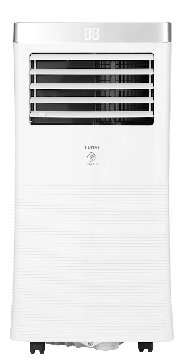 Мобильный кондиционер FUNAI, серия CAMELLIA. Компактные размеры в сочетании с мобильностью позволяют расположить прибор в любом помещении. Мобильные кондиционеры серии CAMELLIA имеют 3 режима работы: охлаждение, осушение, вентиляция, что позволяет легко настроить работу прибора под ваши потребности.;