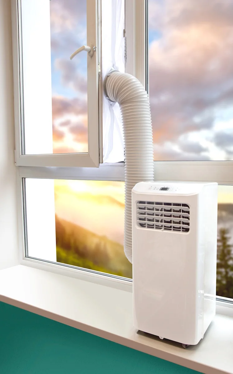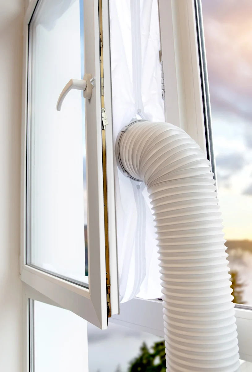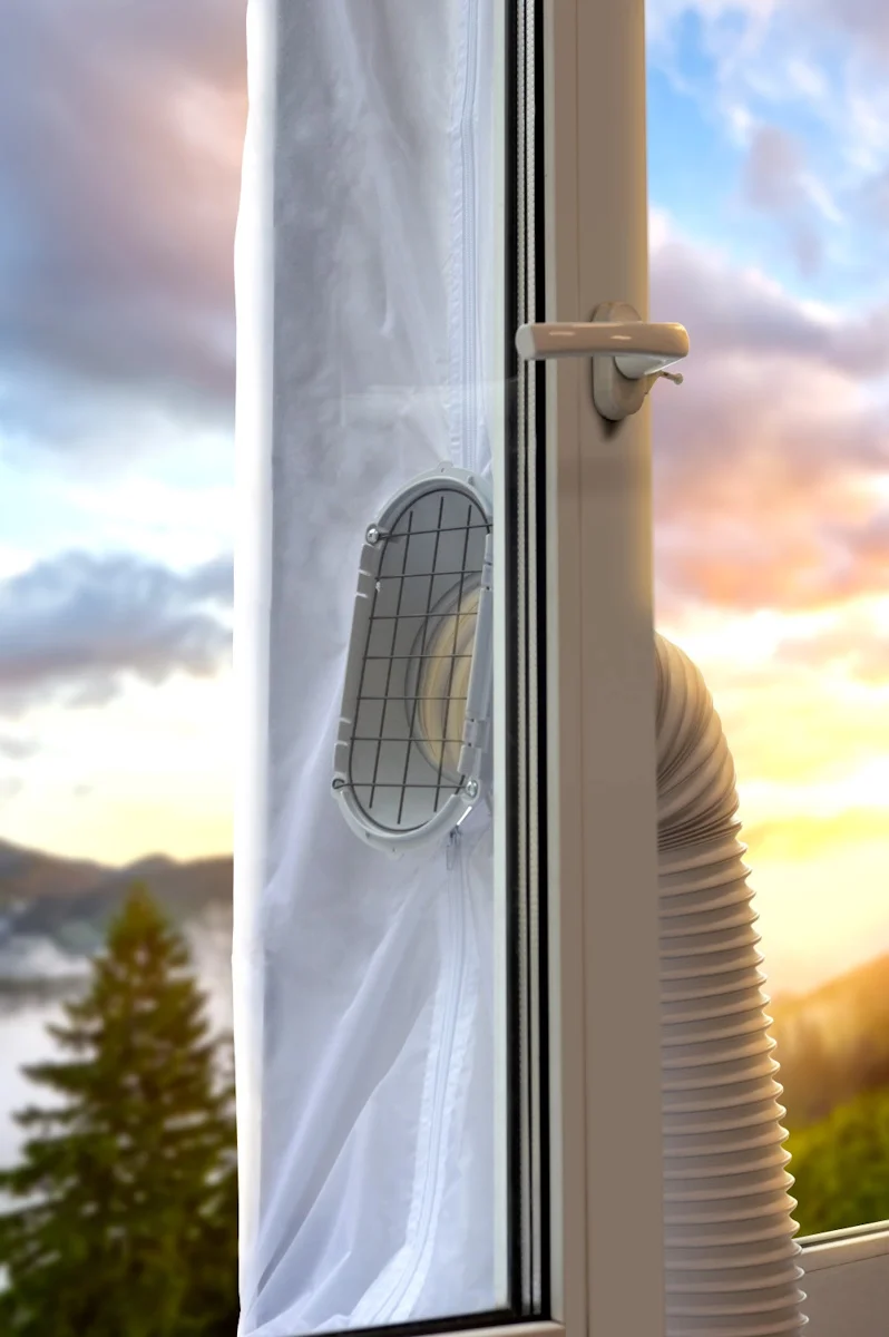С помощью оконного адаптера можно вывести гофру от кондиционера прямо в окно, что позволяет контролировать температуру в помещении.;