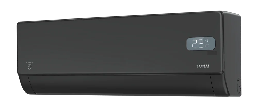 Все климатическое оборудование FUNAI создается в единой концепции Future and Air, которая является стратегической идеей бренда.;Сутью концепции является создание для человека высокого качества его жизни, для чего необходимо наличие здорового и комфортного микроклимата по всем параметрам: чистота воздуха, его обновление и состав, влажность и температура.;Все приборы FUNAI имеют реальные отличия от типовых аналогов.;AKOYA (Ако́йя) – это самый первый в мире культивированный жемчуг, полученный в Японии.;Морской жемчуг AKOYA стал признанным стандартом качества благодаря своей одной из ключевых характеристик – уникальному блеску.;Серия кондиционеров AKOYA NERO отражает преимущества японского природного окружения и результаты передовых технологий.;Внутренний блок в черном матовом исполнении впишется в любой интерьер и станет изысканным акцентом в вашем доме. Внутренние блоки имеют низкий уровень шума от 20 дБ(А), наружные блоки оснащены шумоизоляцией компрессора и комплектуются антивибрационными опорами, снижающими вибрацию и передачу шума. Также предусмотрены управление воздушным потоком во всех направлениях с пульта и встроенный ионизатор SMART Ionizer для улучшения качества воздуха.;