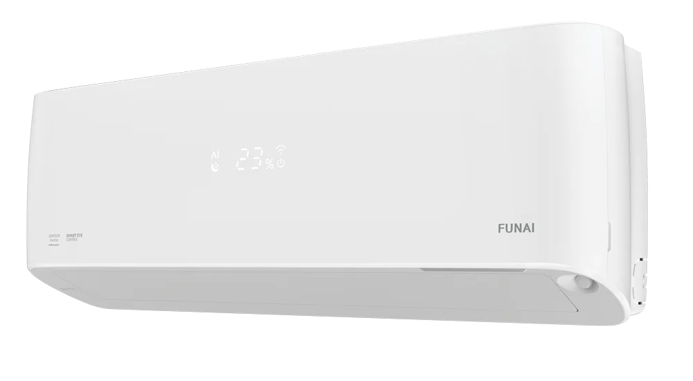 Все климатическое оборудование FUNAI создается в единой концепции Future and Air, которая является стратегической идеей бренда. Сутью концепции является создание для человека высокого качества его жизни, для чего необходимо наличие здорового и комфортного микроклимата по всем параметрам: чистота воздуха, его обновление и состав, влажность и температура.;Все приборы FUNAI имеют реальные отличия от типовых аналогов, представленных на рынке. Модели кондиционеров серии EMPEROR SMART EYE Inverter воплощают в себе новейшие достижения науки, техники и технологий, тенденции дизайнерской мысли.;Вдохновением для создания кондиционеров серии EMPEROR SMART EYE Inverter стал величественный и эффектный меч императора. Взгляд мудрого и могущественного повелителя, осматривающего свои владения, замечает каждое движение на своей территории. Способность видеть будущее помогает императору строить свою империю.;Принципиально новая линейка FUNAI оснащена инновационной функцией SMART EYE: инфракрасный сенсор позволяет определять местоположение человека в помещении, и в зависимости от выбранной настройки кондиционер направляет поток воздуха на человека или мимо него, обеспечивая максимально комфортные условия. Встроенный супермощный ионизатор SMART Hi-Nano уничтожает вирусы и бактерии в воздухе, включая коронавирус. Он создает 1 000 000 ионов на 1 см<sup>3</sup>. Новейшая технология SMART Air Inspector самостоятельно выбирает оптимальный режим и поддерживает комфортную температуру, учитывая комплекс параметров, в том числе влажность воздуха в помещении.;Функция SMART Air обеспечивает автоматическое управление воздушным потоком во всех направлениях, а благодаря функции SMART Feel вы всегда сможете отследить изменение температурного показателя в месте нахождения пользователя. Также предусмотрена технология самоочистки SMART ICE Clean, которая позволяет очистить теплообменник внутреннего и внешнего блоков путем замораживания.;Данная сплит-система имеет супернизкий уровень шума внутреннего блока от 18 дБ(А). А для комфортного сна предусмотрена функция SMART Sleep с 4 специальными программами для создания наиболее комфортных условий для сна и отдыха. Индивидуальная настройка ночного режима обеспечивает крайне низкий уровень шума, отключаемую индикацию и экономию электроэнергии.;Встроенный Wi-Fi-модуль позволяет управлять сплит-системой из любой точки земного шара.;Внутренние блоки сплит-систем EMPEROR SMART EYE Inverter комплектуются 4 дополнительными (сменными) фильтрами SMART Ion.;Для минимизации вибрации внешнего блока и существенного уменьшения уровня шума внешние блоки комплектуются виброопорами. Также предусмотрена шумоизоляция компрессора наружного блока , что снижает уровень шума, повышая комфорт при использовании сплит-систем FUNAI.;