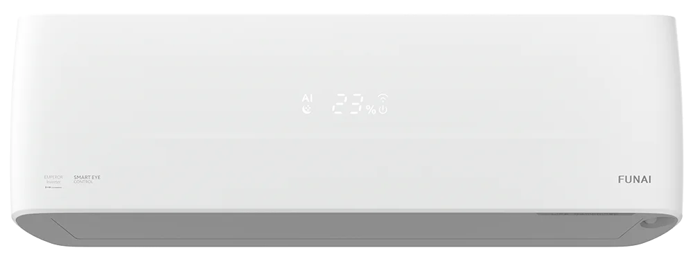Все климатическое оборудование FUNAI создается в единой концепции Future and Air, которая является стратегической идеей бренда. Сутью концепции является создание для человека высокого качества его жизни, для чего необходимо наличие здорового и комфортного микроклимата по всем параметрам: чистота воздуха, его обновление и состав, влажность и температура.;Все приборы FUNAI имеют реальные отличия от типовых аналогов, представленных на рынке. Модели кондиционеров серии EMPEROR UP SMART EYE Inverter воплощают в себе новейшие достижения науки, техники и технологий, тенденции дизайнерской мысли.;Вдохновением для создания кондиционеров серии EMPEROR UP SMART EYE Inverter стал величественный и эффектный меч императора. Взгляд мудрого и могущественного повелителя, осматривающего свои владения, замечает каждое движение на своей территории. Способность видеть будущее помогает императору строить свою империю.;Принципиально новая линейка FUNAI оснащена инновационной функцией SMART EYE: инфракрасный сенсор позволяет определять местоположение человека в помещении, и в зависимости от выбранной настройки кондиционер направляет поток воздуха на человека или мимо него, обеспечивая максимально комфортные условия. Встроенный супермощный ионизатор SMART Hi-Nano уничтожает вирусы и бактерии в воздухе, включая коронавирус. Он создает 1 000 000 ионов на 1 см<sup>3</sup>. Новейшая технология SMART Air Inspector самостоятельно выбирает оптимальный режим и поддерживает комфортную температуру, учитывая комплекс параметров, в том числе влажность воздуха в помещении.;Функция SMART Air обеспечивает автоматическое управление воздушным потоком во всех направлениях, а благодаря функции SMART Feel вы всегда сможете отследить изменение температурного показателя в месте нахождения пользователя. Также предусмотрена технология самоочистки SMART ICE Clean, которая позволяет очистить теплообменник внутреннего и внешнего блоков путем замораживания.;Данная сплит-система имеет супернизкий уровень шума внутреннего блока от 18 дБ(А). А для комфортного сна предусмотрена функция SMART Sleep с 4 специальными программами для создания наиболее комфортных условий для сна и отдыха. Индивидуальная настройка ночного режима обеспечивает крайне низкий уровень шума, отключаемую индикацию и экономию электроэнергии.;Встроенный Wi-Fi-модуль позволяет управлять сплит-системой из любой точки земного шара.;Внутренние блоки сплит-систем EMPEROR UP SMART EYE Inverter комплектуются 4 дополнительными (сменными) фильтрами SMART Ion.;Для минимизации вибрации внешнего блока и существенного уменьшения уровня шума внешние блоки комплектуются виброопорами. Также предусмотрена шумоизоляция компрессора наружного блока , что снижает уровень шума, повышая комфорт при использовании сплит-систем FUNAI.;
