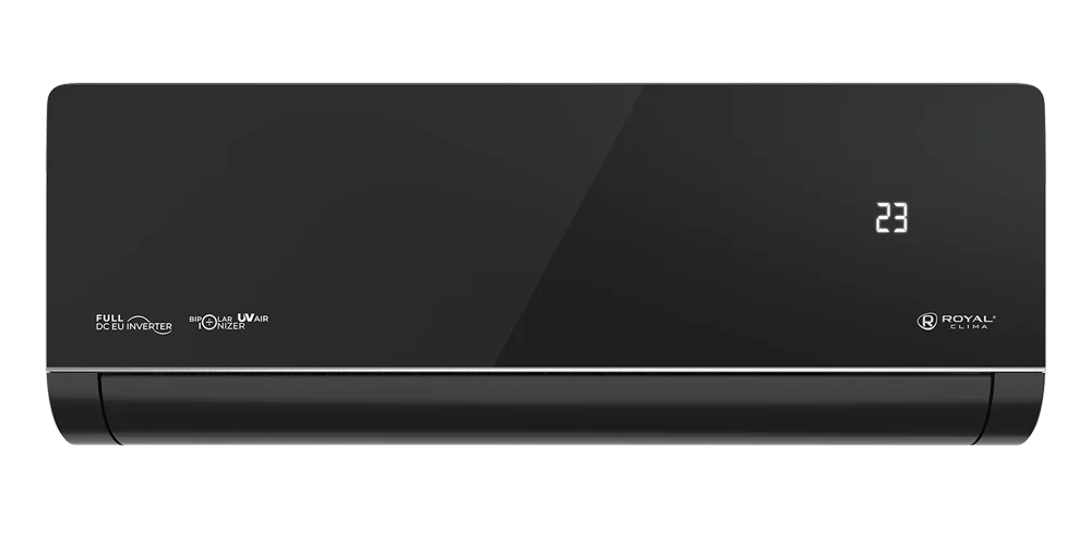 ROYAL SUPREMO NERO Full DC EU Inverter — премиальные кондиционеры, флагманская серия с изысканным дизайном. Глянцевая передняя панель делает внешний вид одновременно утонченным и роскошным. Одной из главных особенностей серии является система двойного обеззараживания воздуха. Сочетание UV-лампы и мощного биполярного ионизатора на 99 % уничтожает вирусы и бактерии.;