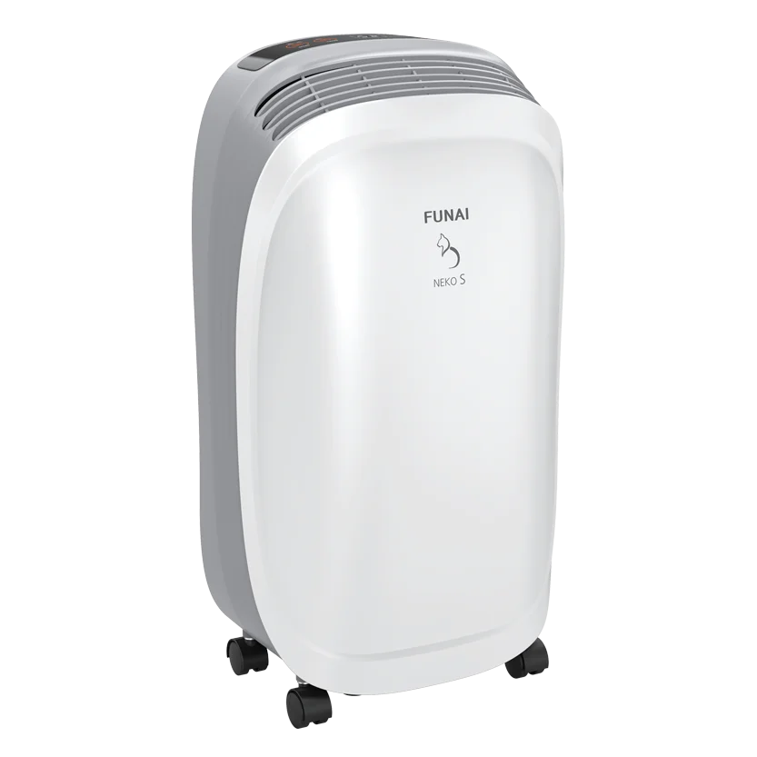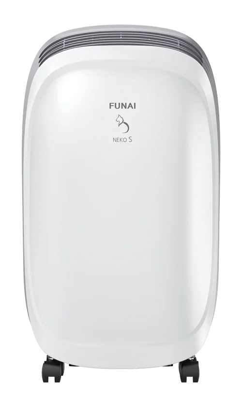 NEKO переводится как «кошка» — любимое домашнее животное как в Азии, так и во всем мире. Их присутствие наполняет дом спокойствием и уютом. Кошки грациозны и умны, они любят уют и не любят сырость.;Инженеры FUNAI создали серию бытовых осушителей воздуха NEKO, которые будут следить, чтобы дома было сухо и уютно.;Базовая модель NEKO S имеет производительность по осушению до 10 литров в день и оптимальный набор настроек, что позволяет эффективно использовать дома, на даче или в гараже. Все модели осушителей FUNAI оснащены традиционными функциями: таймером 1–24 часа, системой настройки скорости обдува, интеллектуальным управлением уровнем влажности воздуха.;Для безопасной эксплуатации на панель управления осушителей добавлена индикация уровня воды в баке и режима разморозки, который автоматически включается при падении температуры окружающего воздуха ниже +5 °C, останавливая работу компрессора. Для удобства перемещения модели оснащены колесиками.;
