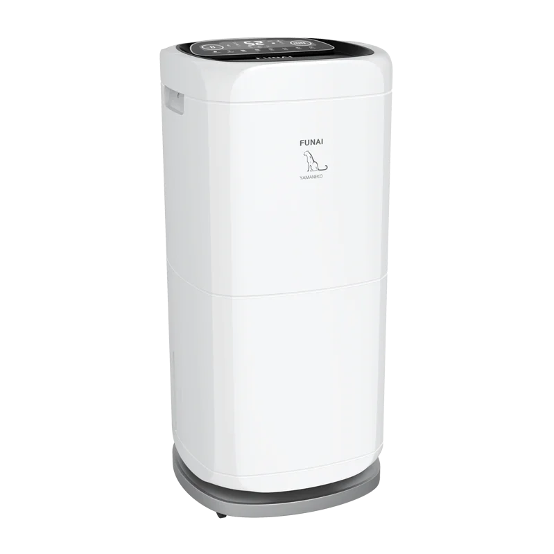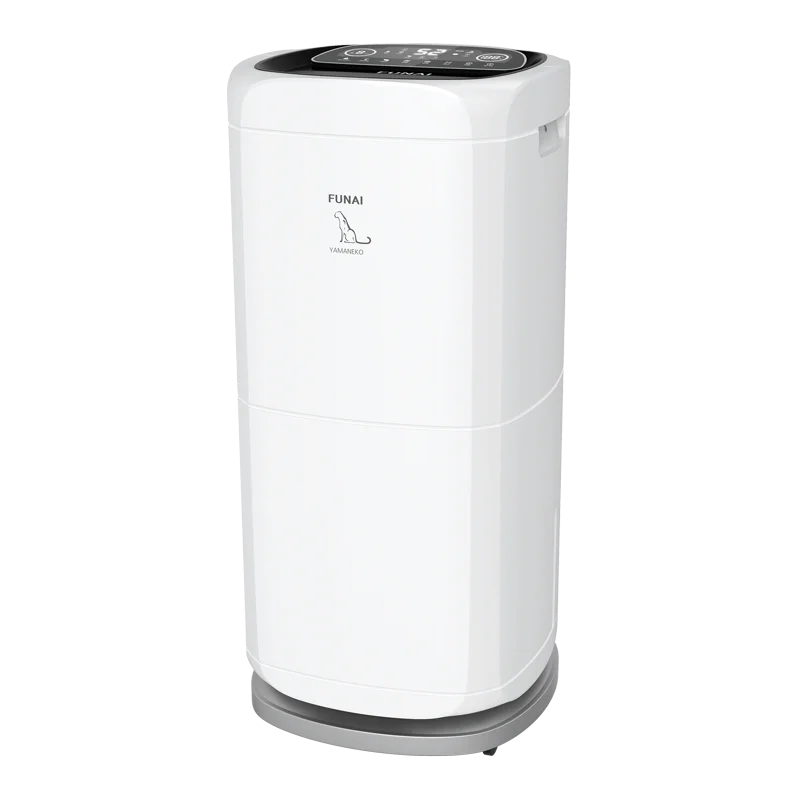 YAMANEKO — дикая кошка или лесной кот — стремительный, грациозный и бесшумный хищник. Как и большинство кошачьих, он не любит воду.;Мощный осушитель FUNAI серии YAMANEKO 60 отличается высокой производительностью в сочетании с низким уровнем шума для своего класса. Производительность осушения 60 литров в день позволяет использовать устройство в прачечных, бассейнах и аквапарках.;Осушитель имеет ряд готовых настроек: осушение, вентиляция, сушка одежды, функцию блокировки настроек от детей. При стационарном использовании к осушителям может быть подключен дренажный шланг для непрерывного слива конденсата.;Для удобства перемещения модель оборудована колесиками. Осушитель оснащен и ставшими уже традиционными функциями: таймером 1–24 часа, системой настройки скорости обдува, интеллектуальным управлением для точного поддержания заданного уровня влажности воздуха.;Для безопасной эксплуатации осушителя были добавлены 2 функции, которые также отображаются на панели управления:;• индикация уровня воды в баке, оповещающая о переполнении,<br>• режим разморозки, который автоматически включается при температуре окружающего воздуха ниже +5 °C, останавливая работу компрессора.;