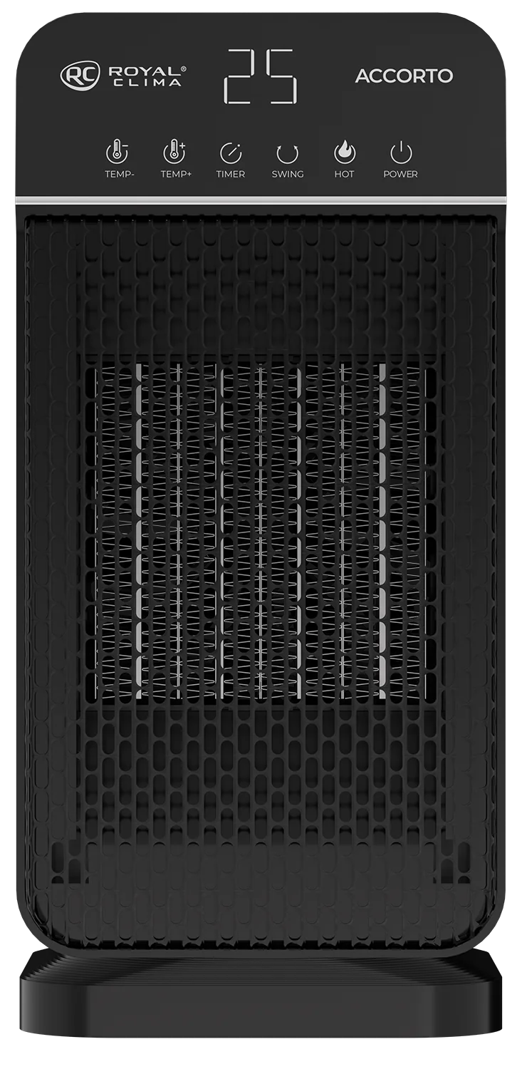 Тепловентилятор ACCORTO послужит безопасным источником тепла в вашем доме. Высокоэффективный металлокерамический нагревательный элемент мощностью 2000 Вт обеспечит нагрев в течение нескольких секунд.;Использование прибора является пожаробезопасным благодаря встроенной защите от перегрева и датчика опрокидывания, который моментально отключает прибор при падении.;Прибор многофункционален и универсален в эксплуатации, имеет электронное управление, таймер и оснащен поворотной конструкцией, при этом устойчив для напольного и настольного размещения.;