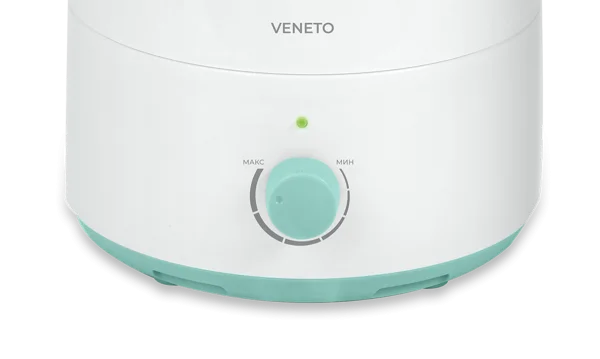 Увлажнитель VENETO имеет резервуар для воды объемом 2,5 литра. Интенсивность увлажнения воздуха достигает 300 мл/ч. До 8 часов непрерывной работы на максимальной скорости выхода пара без долива воды в резервуар.;