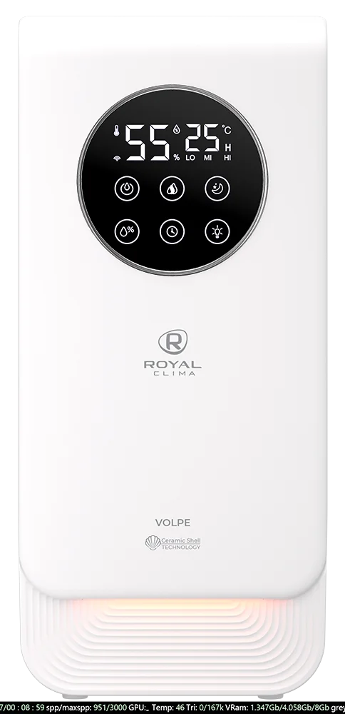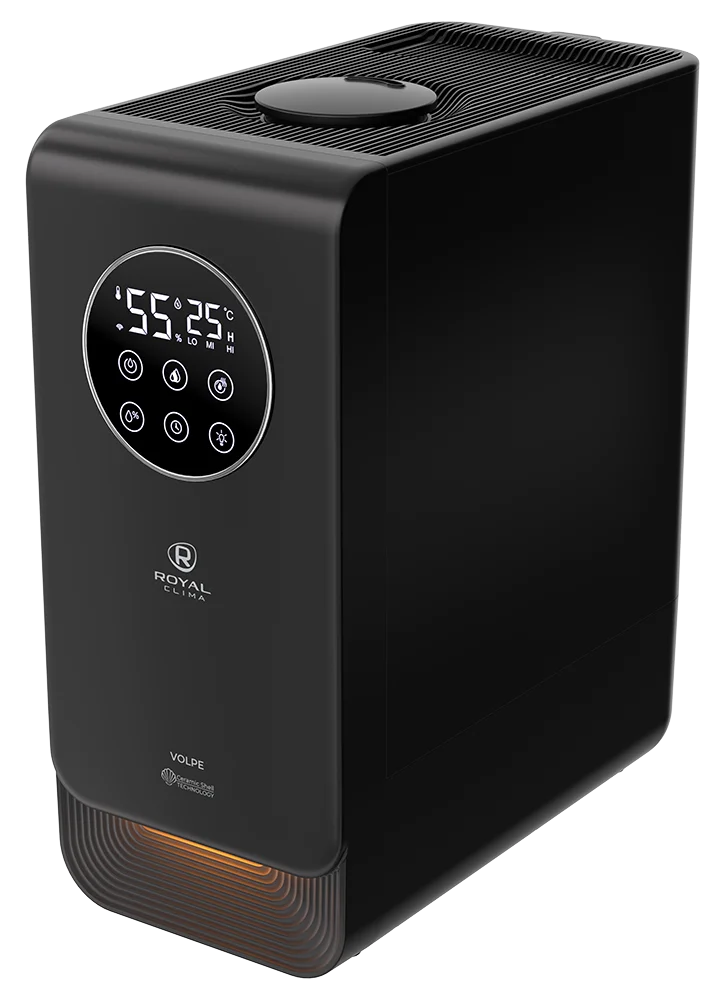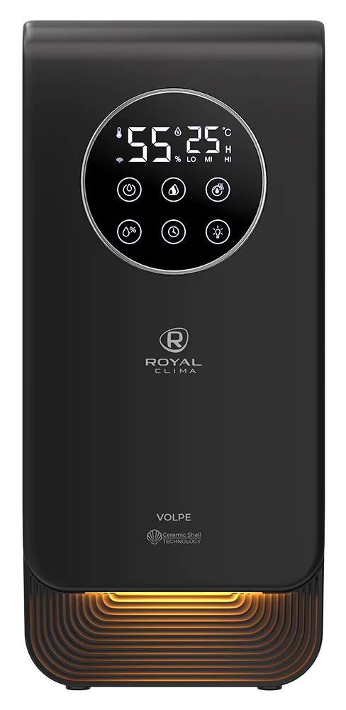 Увлажнитель воздуха VOLPE от ROYAL CLIMA создаст комфортный микроклимат в вашем доме. Комфортное управление прибором благодаря Wi-Fi, приложение SmartLife.;При помощи гигростата можно установить желаемый уровень влажности в помещении от 30% до 90%. Электронная панель управления имеет 3 режима скорости выхода пара и индикацию относительной влажности воздуха и температуры в помещении. Серия RUH-VP500/6.5E-BL обладает режимом "Тёплый пар" для максимально быстрого увлажнения помещения. С помощью данной функции производительность увлажнителя повышается до 500 мл/ч. Мягкая подсветка создаст уютную атмосферу, можно настроить необходимый уровень яркости.;Встроенная капсула Aroma Nature для эффективной ароматизации воздуха. Помещение наполнится любимыми ароматами, при добавлении нескольких капель аромамасла в специальный отсек.;