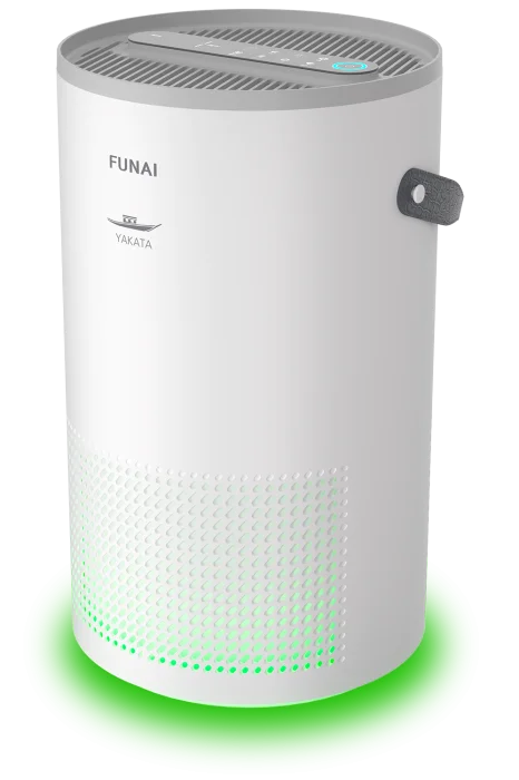 Все климатическое оборудование FUNAI создается в единой концепции Future and Air, которая является стратегической идеей бренда. Сутью концепции является создание для человека высокого качества его жизни, для чего необходимо наличие здорового и комфортного микроклимата по всем параметрам: чистота воздуха, его обновление и состав, влажность и температура.;Для того чтобы действительно сделать воздух в помещении чистым, очиститель должен иметь достаточный расход воздуха.;Очистители FUNAI YAKATA имеют расход воздуха 230 и 300 м<sup>3</sup>/час, что позволяет обслуживать площадь помещения 30 - 40 м<sup>2</sup>.;В серии YAKATA реализована 5-ступенчатая фильтрация воздуха:;