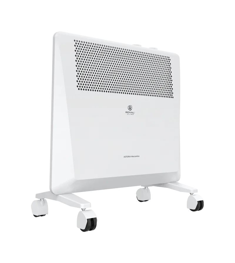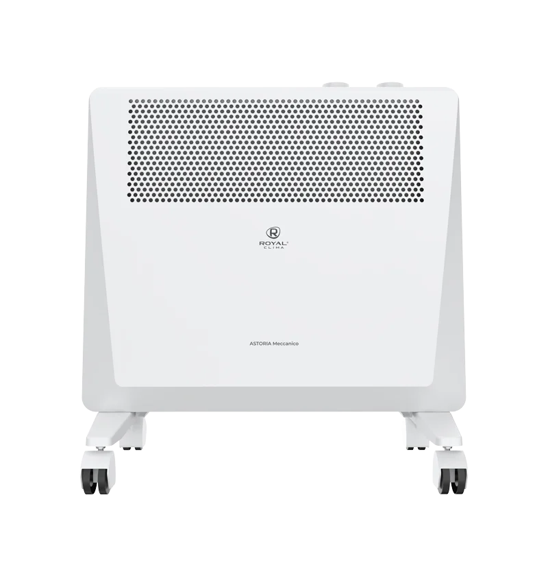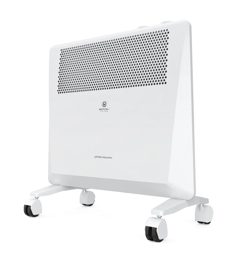 Конструкция электрических конвекторов серии ASTORIA Meccanico отличается увеличенной площадью теплообмена и сниженная температура поверхности. Помимо встроенной защиты от перегрева, в приборе реализована система защиты от опрокидывания.;Высокоэффективный литой алюминиевый нагревательный элемент X-ROYAL LONG LIFE HEATER быстро обогреет помещение до комфортной температуры.;ASTORIA Meccanico обладает устойчивой конструкцией на колёсах. Механическая панель управления конвектора расположена на верхней части для комфортного и удобного использования. Возможна установка прибора на стену, все необходимое уже входит в комплектацию.;Серия представлена моделями с мощностью 1, 1,5 и 2 кВт.;