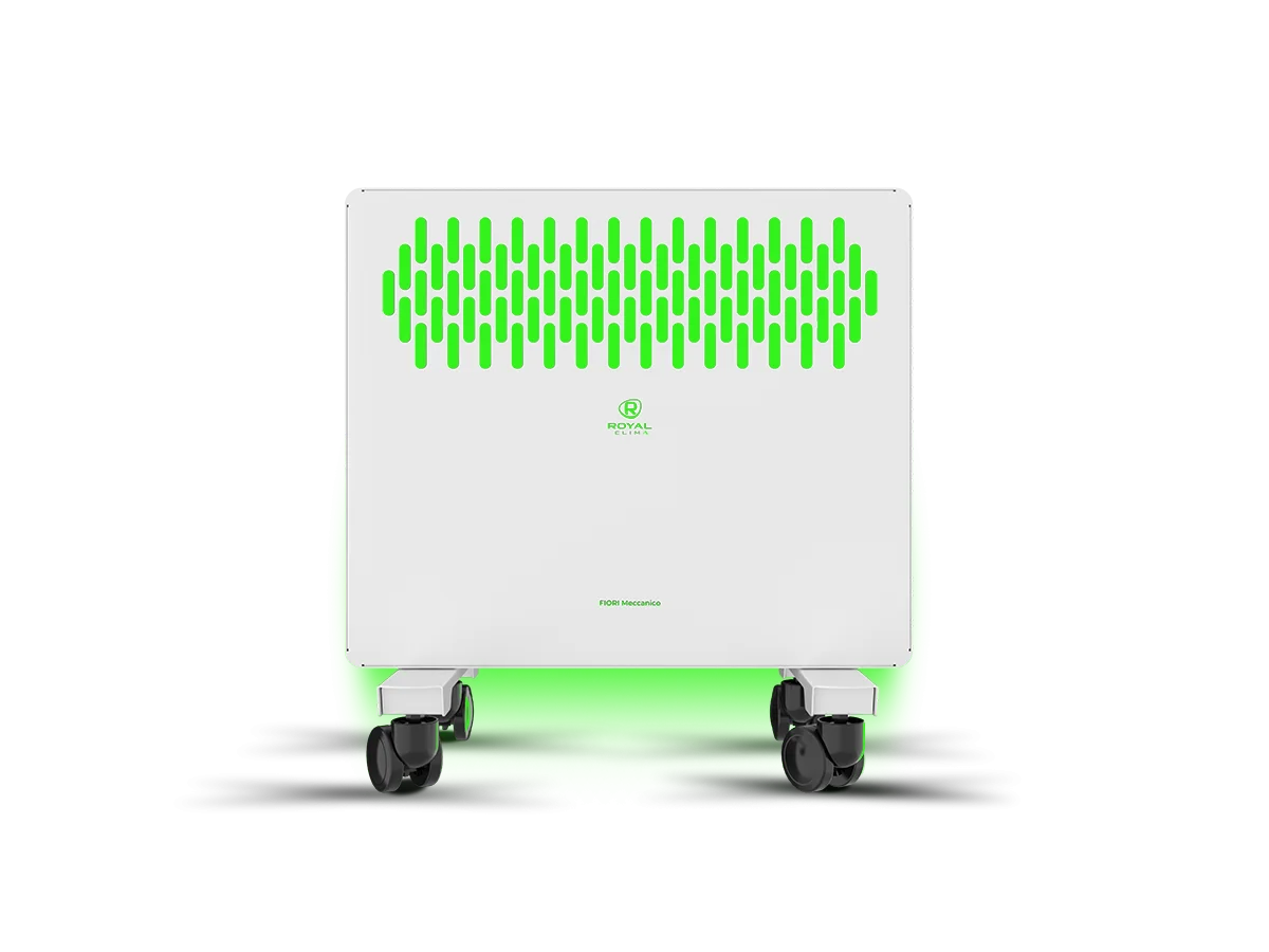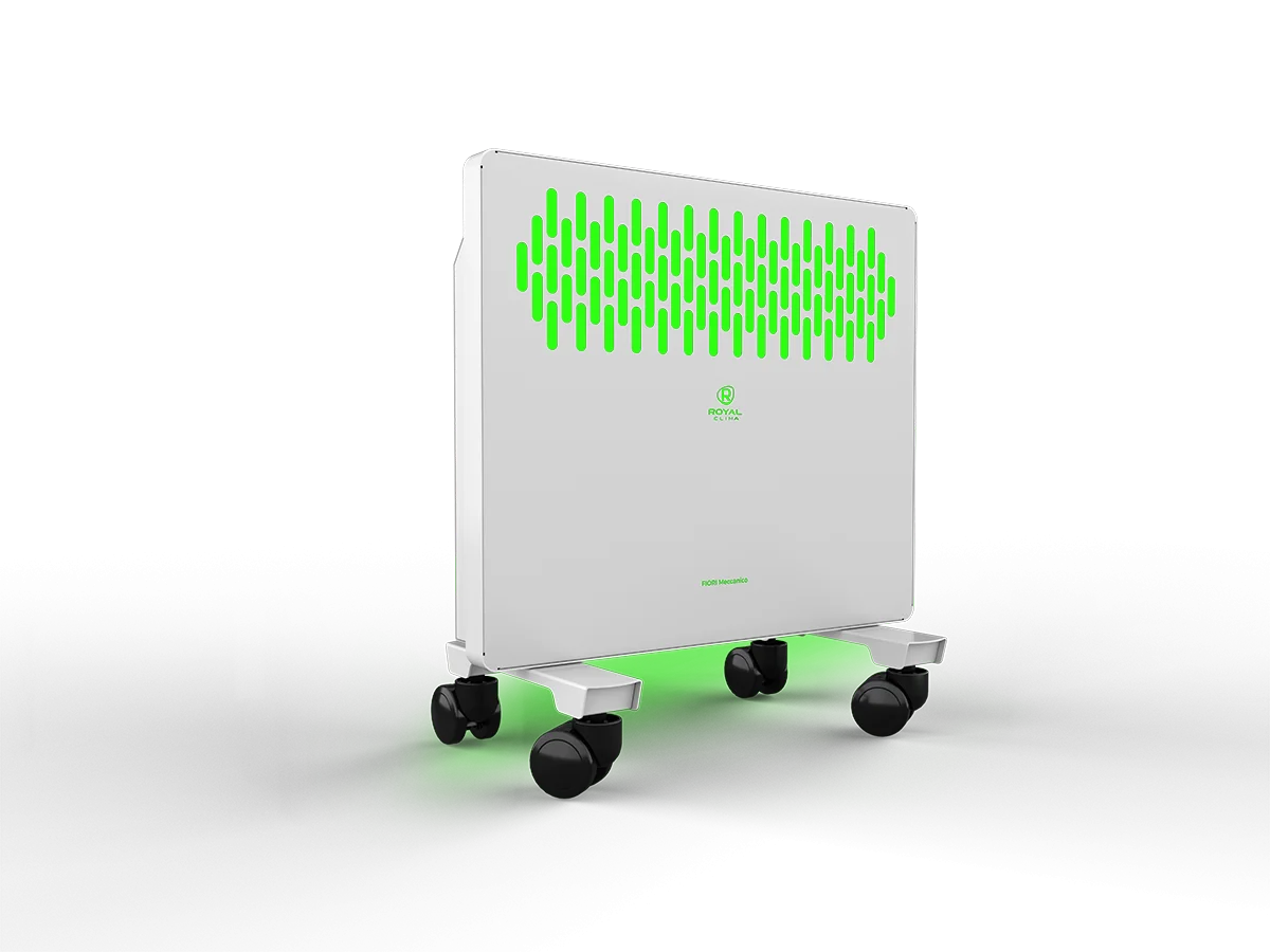 Электрические конвекторы серии FIORI Meccanico отличаются повышенной прочностью корпуса. Помимо встроенной защиты от перегрева, в приборе реализована система защиты от опрокидывания.;Высокоэффективный литой алюминиевый нагревательный элемент X-ROYAL LONG LIFE HEATER быстро обогреет помещение до комфортной температуры.;FIORI Meccanico обладает устойчивой конструкцией на колёсах. Механическая панель управления конвектора расположена на боковой части для комфортного и удобного использования. Возможна установка прибора на стену, все необходимое уже входит в комплектацию.;Серия представлена моделями с мощностью 1, 1,5 и 2 кВт.;