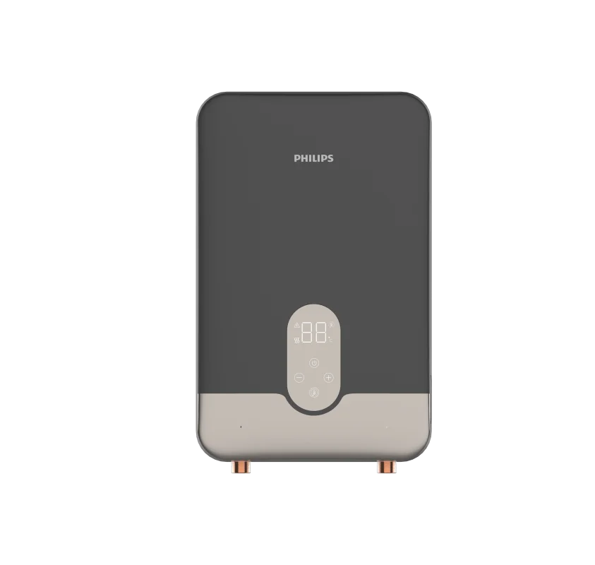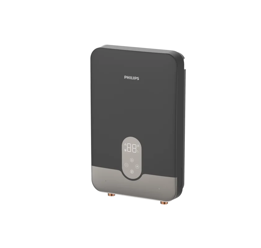 Удобный, надежный и безопасный проточный водонагреватель мгновенно нагревает воду. Обладает литым алюминиевым нагревательным элементом мощностью 8500 Вт. Водонагреватель встраивается в систему водоснабжения и обеспечивает стабильный поток горячей воды на несколько точек водоразбора, например, раковина и душ. В комплекте у прибора имеется душевая лейка и шланг. Благодаря компактным размерам прибор можно установить в любых помещениях, в доме, квартире или на даче.;Установите с помощью панели управления комфортную температуру нагрева. Прибор поддерживает заданную температуру с точностью до ±1 °C. На LED-дисплее отображается текущая температура нагрева. Или подключите интеллектуальный режим сезонного нагрева воды. Прибор самостоятельно будет контролировать температуру воды на входе и регулировать мощность обогрева для достижения комфортной температуры на выходе.;Одним из важных преимуществ проточных водонагревателей PHILIPS является обширная система безопасности. Защита от перегрева обеспечивает автоматическое отключение нагрева в случае превышения допустимой температуры. Также есть защита от включения нагрева без воды, утечки электричества и образования накипи. Всё это помогает снизить риск возникновения короткого замыкания и пожароопасных ситуаций.;